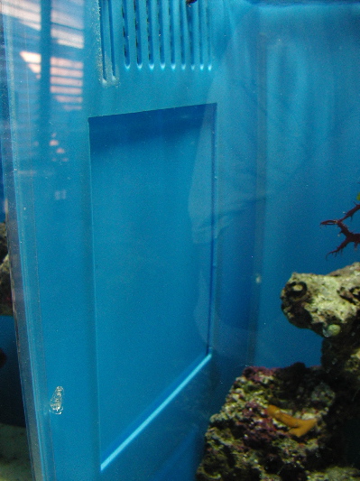 cuttle condo system has changed somewhat. In an effort to breed the cuttles I have I built this cuttle condo. It consists of a 100 gallon tank divided every 15 inches or every 20 inches to create from one to four compartments. I built it this way for two reasons - it will make it easier to breed the cuttles, and if am unsuccessful breeding them or cannot get them anymore I can customize the system for other animals. There is also an additional 20 gallon in the stand that is plumbed into the sump and can be easily unplumbed from the sump (it has a bak pak skimmer on it) as an emergency hospital or QT. Currently the tank is divided into four sections and each has its own circulation. From left to right (leftmost section has the overflow): Hagen 201 power head, Magnum 330 (the intake is in the overflow), Aqua clear 300 HOB filter, Mag 7 return. Each divider has a door that can be removed, and can either be opaque or clear. Opaque if the neighbors are different sizes or the same sex, and clear to let the cuttles get to know each other without being able to hurt each other. The sump is a 50 gallon containing a Mag 7 as a return pump, a maxi jet 1200 that feeds the 20 gallon tank, heater, filter sock, and Euro Reef CS-2 skimmer. The system is lit by 2 65 watt Lights of America fixtures. Nursery